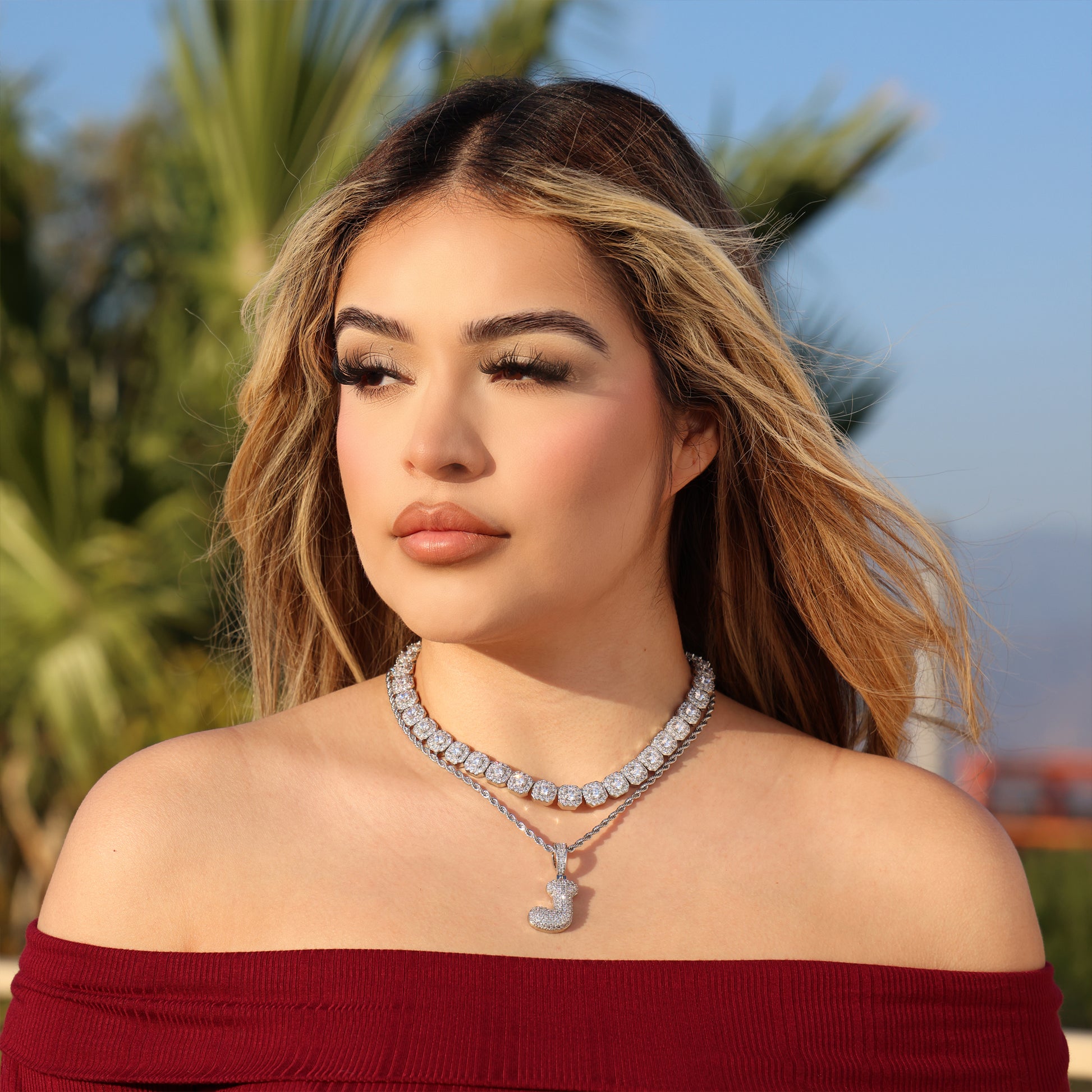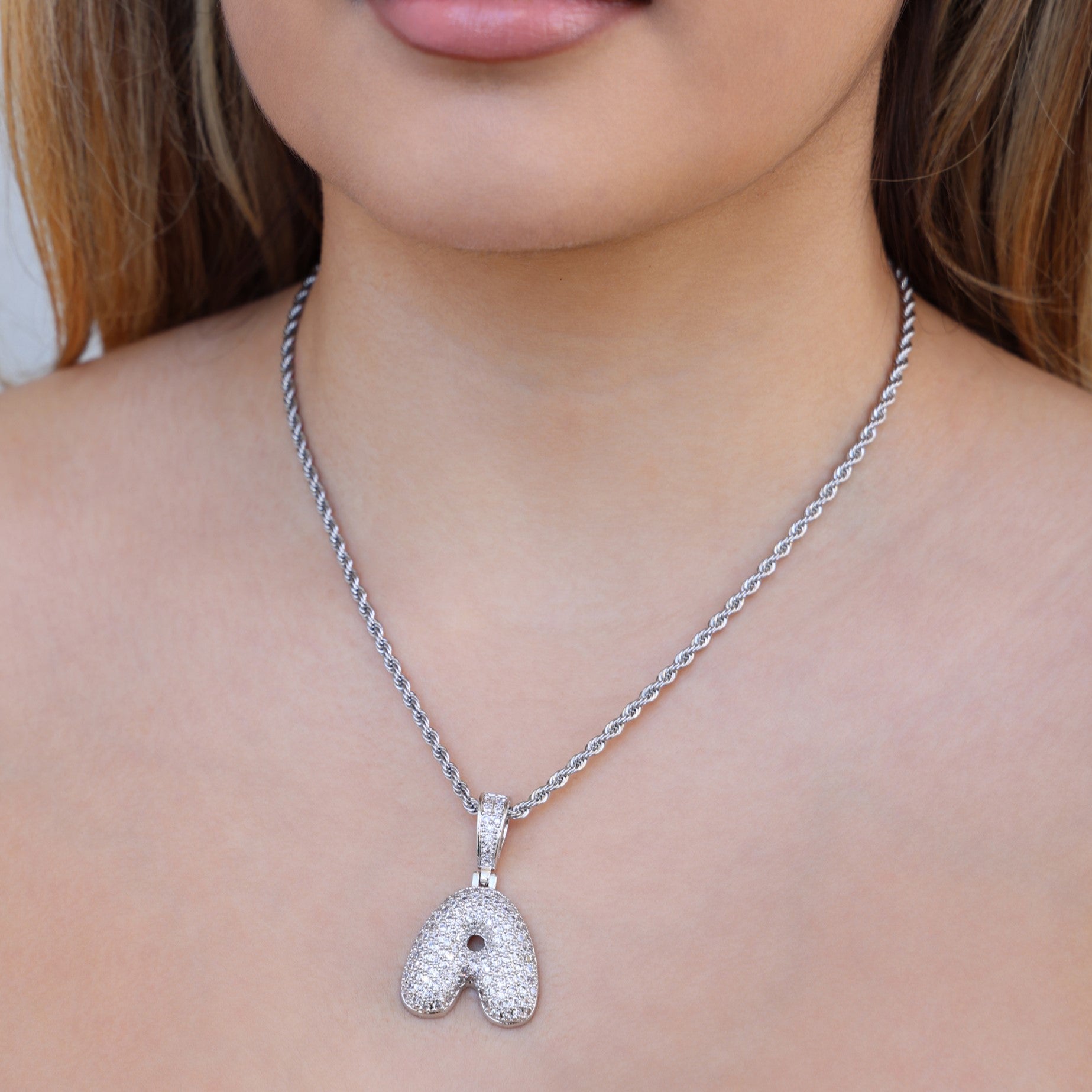 Iced out bubble initial letter (A-Z) Pendant - White Gold
